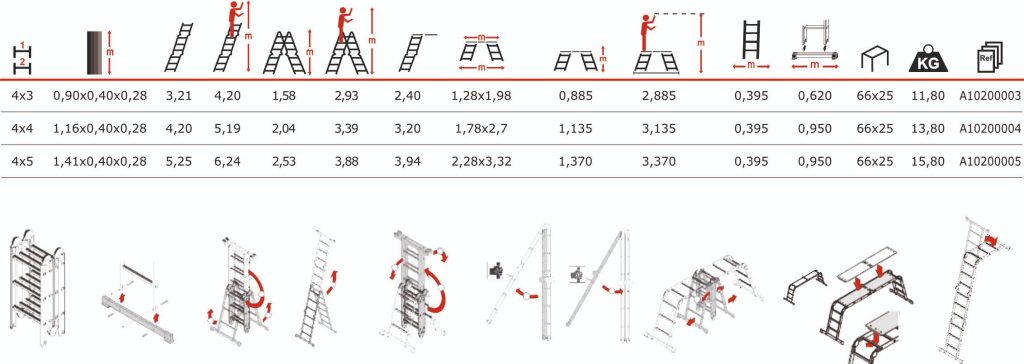 Várias posições de uso – Plataforma, Bancada, Escada e Escadote.